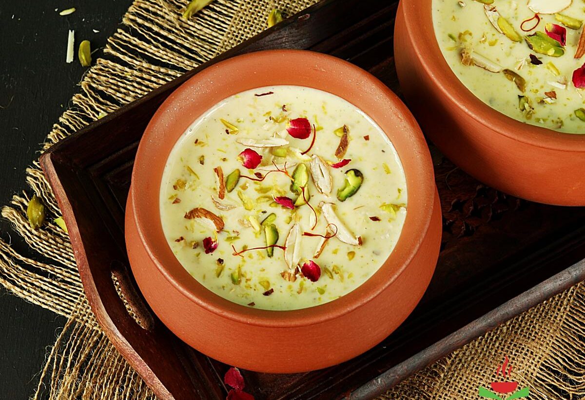 A traditional Indian dessert made from slow-cooked, thickened sweetened milk flavored with cardamom and garnished with chopped nuts. Creamy, rich, and indulgent.